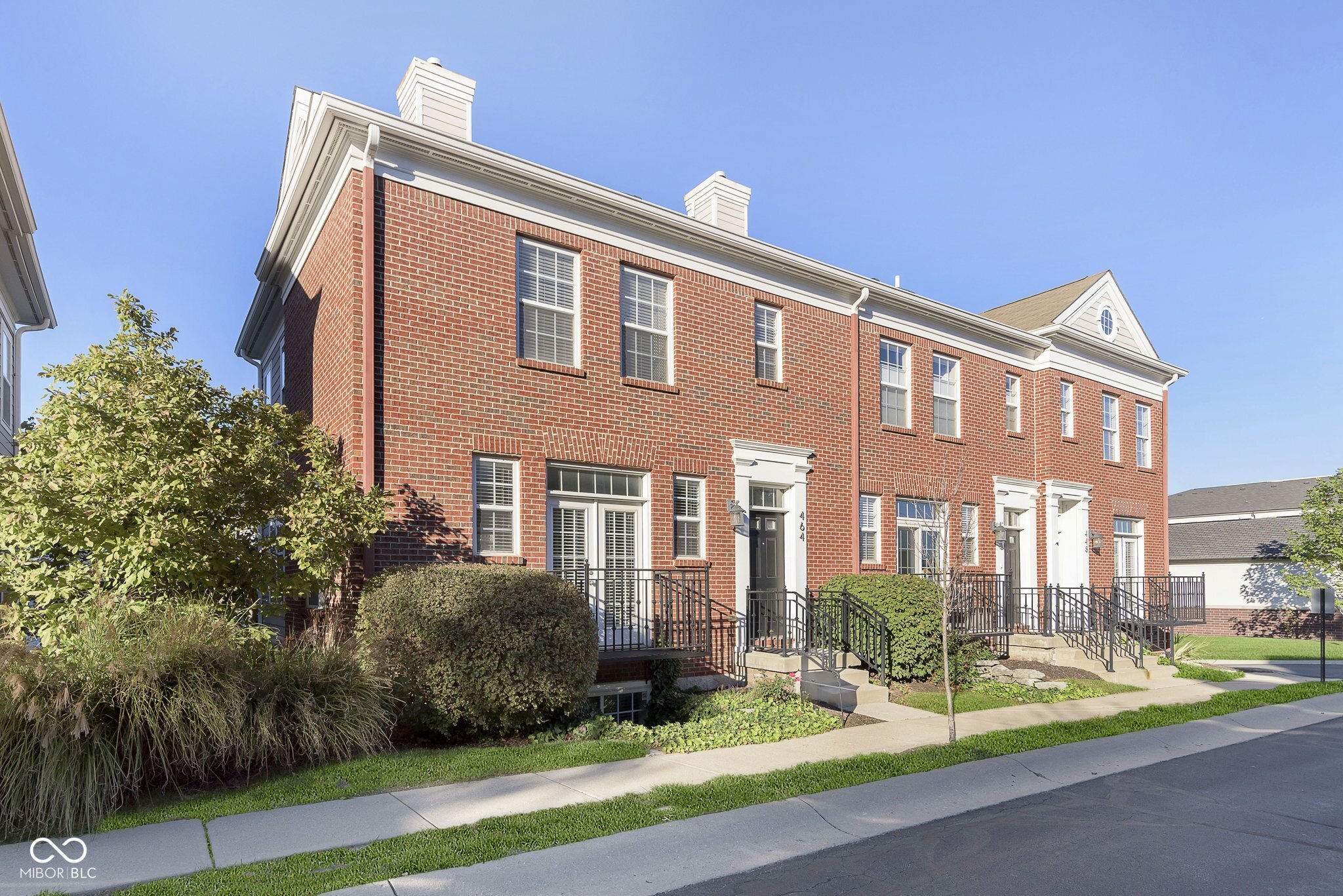 Best VALUE in downtown Carmel! Fantastic 2Bed/2.5Bath END-UNIT Townhome in coveted downtown Carmel location - WALKABLE to it all! If you want to be right in the mix, yet tucked away, this is your spot! Wonderful and easy floorplan w/ large living area anchored by a gas-log fireplace and French doors leading to a Juliet balcony. Spacious eat-in kitchen with white cabinetry (+ pantry!), granite counters, and NEW hardwood flooring. Direct access to another larger balcony off the kitchen, perfect for morning coffee and late afternoon grilling. Half bath on main level. Head upstairs to find both bedrooms - the primary suite boasts vaulted ceilings, walk-in closet, and ensuite with shower and separate tub for spa-like soaking. Second bedroom has an attached private full bath as well! Laundry ROOM on 2nd Floor (washer/dryer included)! And we're not done yet! Flex space on the lower level perfect for an office, home gym, hobby room, or could even be converted to a 3rd bedroom! Attached 2-car garage + plenty of guest parking. Enjoy walking across the street to the Saturday Farmer's Market (Christkindlmarkt in the winter), morning or afternoon strolls down the Monon, catch a live band at Hotel Carmichael, or a show at The Palladium + the many shops and eateries off of City Center Dr. It's hard to beat the convenience and appeal of the Commons at City Centre! It's a lifestyle! There is still time to make this one yours for the HOLIDAYS!
